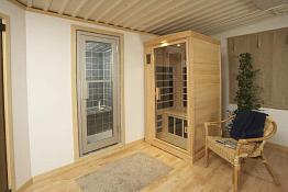 Тепло в инфракрасной кабине вырабатывают инфракрасные нагреватели, которые выделяют сухое длинно-волновое излучение, аналогичное теплу солнечного света. Такое тепло несет определенную пользу для человеческого организма: улучшается кровообращение и иммунитет, уменьшаются мышечные боли, проходит стрессовое состояние, организм испытывает физическое и умственное расслабление.